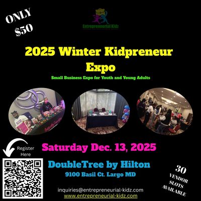 Join us for our Youth Entrepreneurship Expo, a dynamic marketplace where young creators, innovators, and business owners get to shine! This exciting event gives children the opportunity to showcase, promote, and sell their products or services to the community.